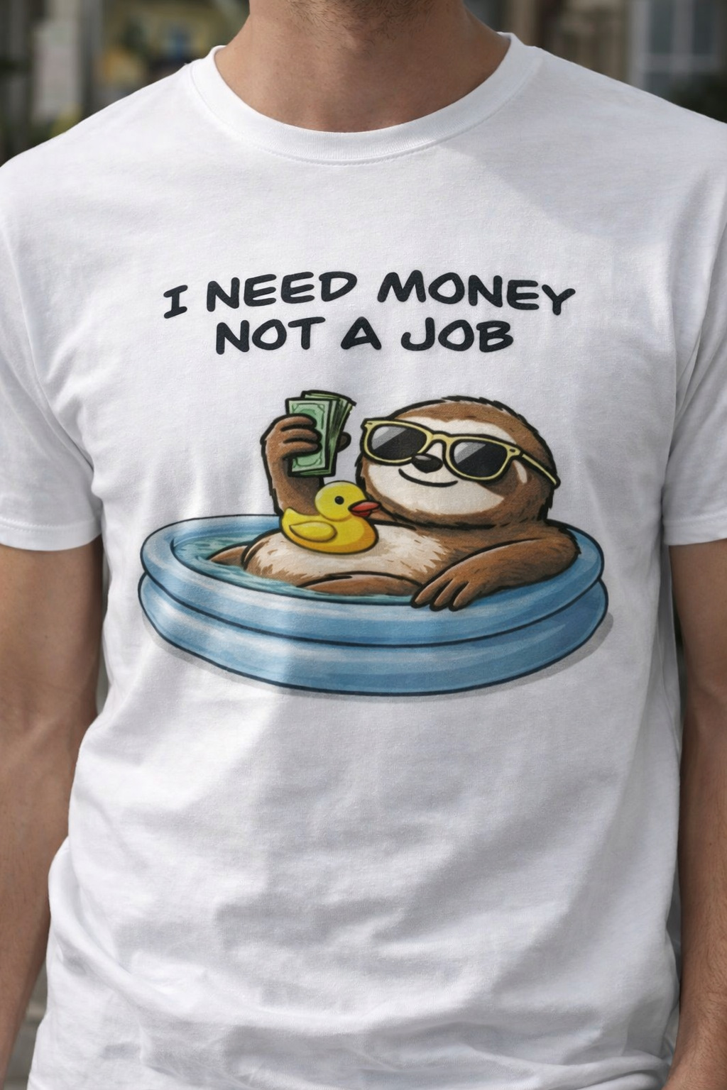 “Benim paraya ihtiyacım var işe değil!” baskılı T-shirt