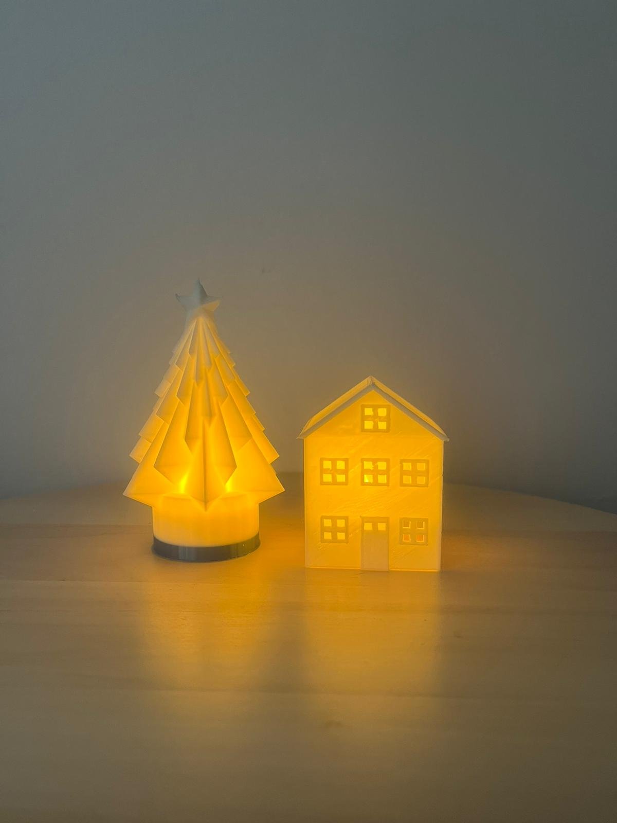 - LED Işıklı Yılbaşı Evi + 2 Çam Ağacı Seti