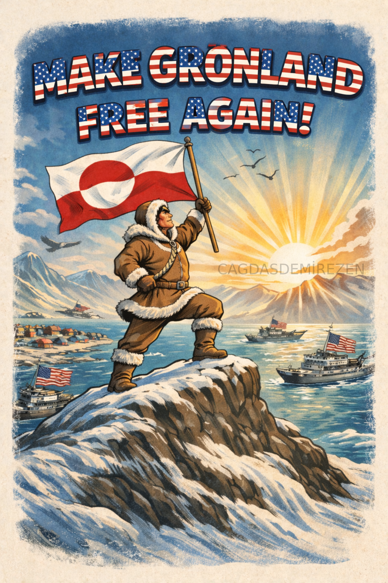 Politik Mizah, Meme Dijital Baskı – Poster / Tişört / Kupa Tasarımı – “Make Grönland Free Again!” – 4000×6000 PNG 300 DPI